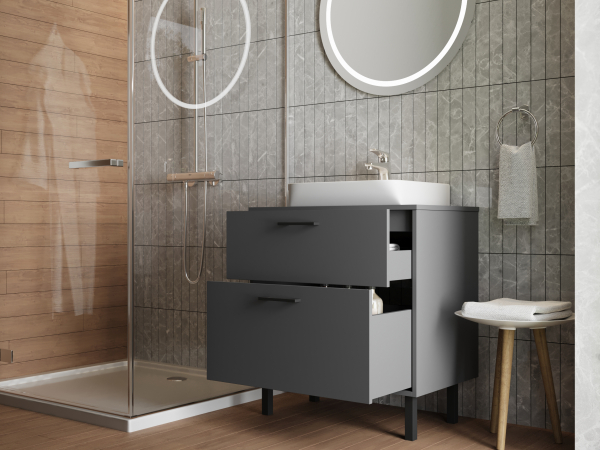 Тумба JUVENTA Afina Af-60 антрацит зі стільницею МДФ та умивальником Neon-45